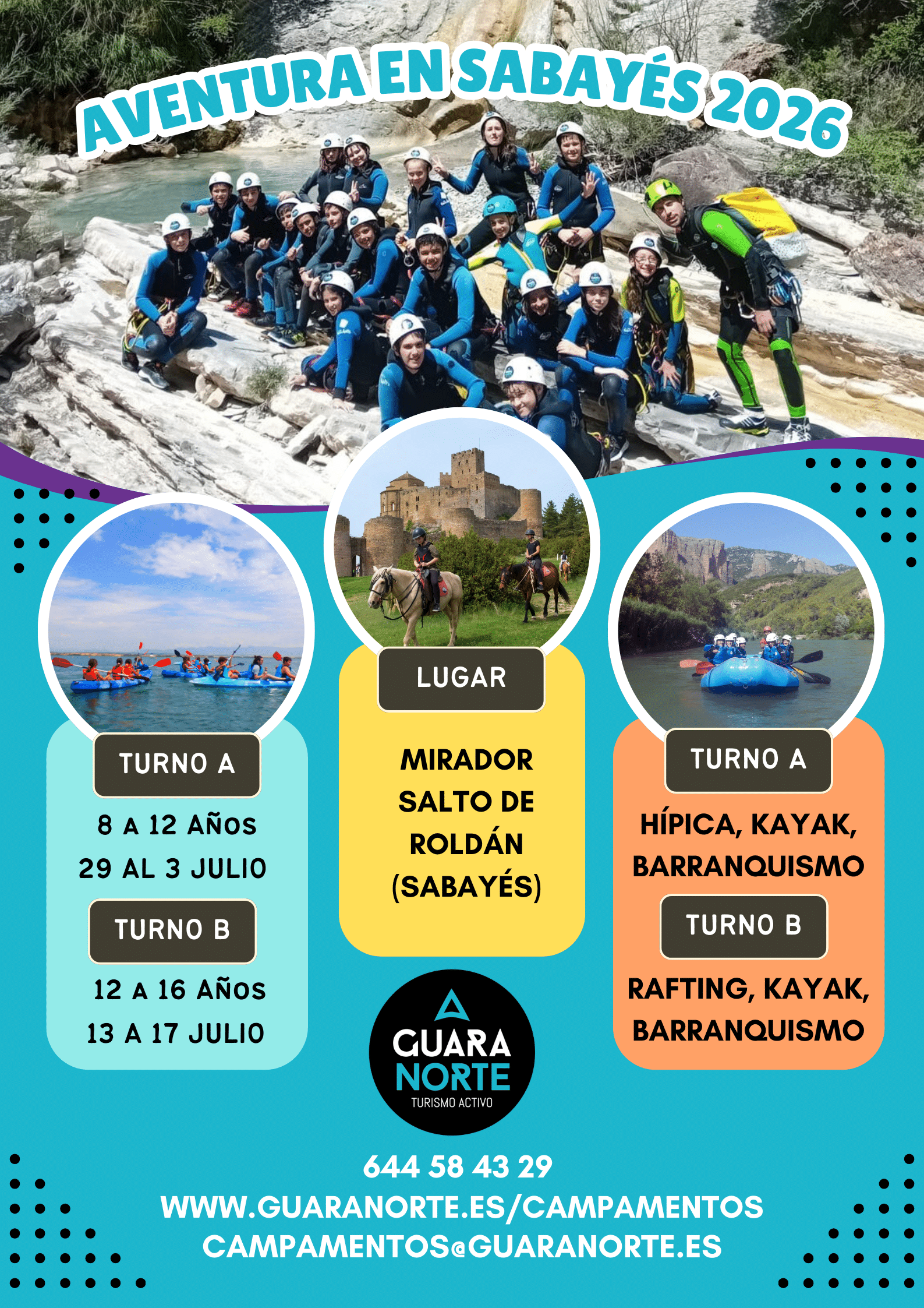 ¡Una aventura inolvidable para tus hijos! 🌿🏕️ En Aventura en Sabayés, a los pies del impresionante Salto de Roldán, o Aventura en Riglos, en el entorno idilico de los Mallos de Riglos los niños disfrutan de días llenos de naturaleza, deporte y diversión en un entorno seguro. Juegos, excursiones y actividades al aire libre les ayudarán a desarrollar autonomía, hacer nuevos amigos y vivir experiencias únicas. ¡Regálales un verano que recordarán siempre! Plazas limitadas, reserva ahora. ¡Una aventura educativa que combina deporte y convivencia en un entorno inolvidable! Ir a Campamentos 2026